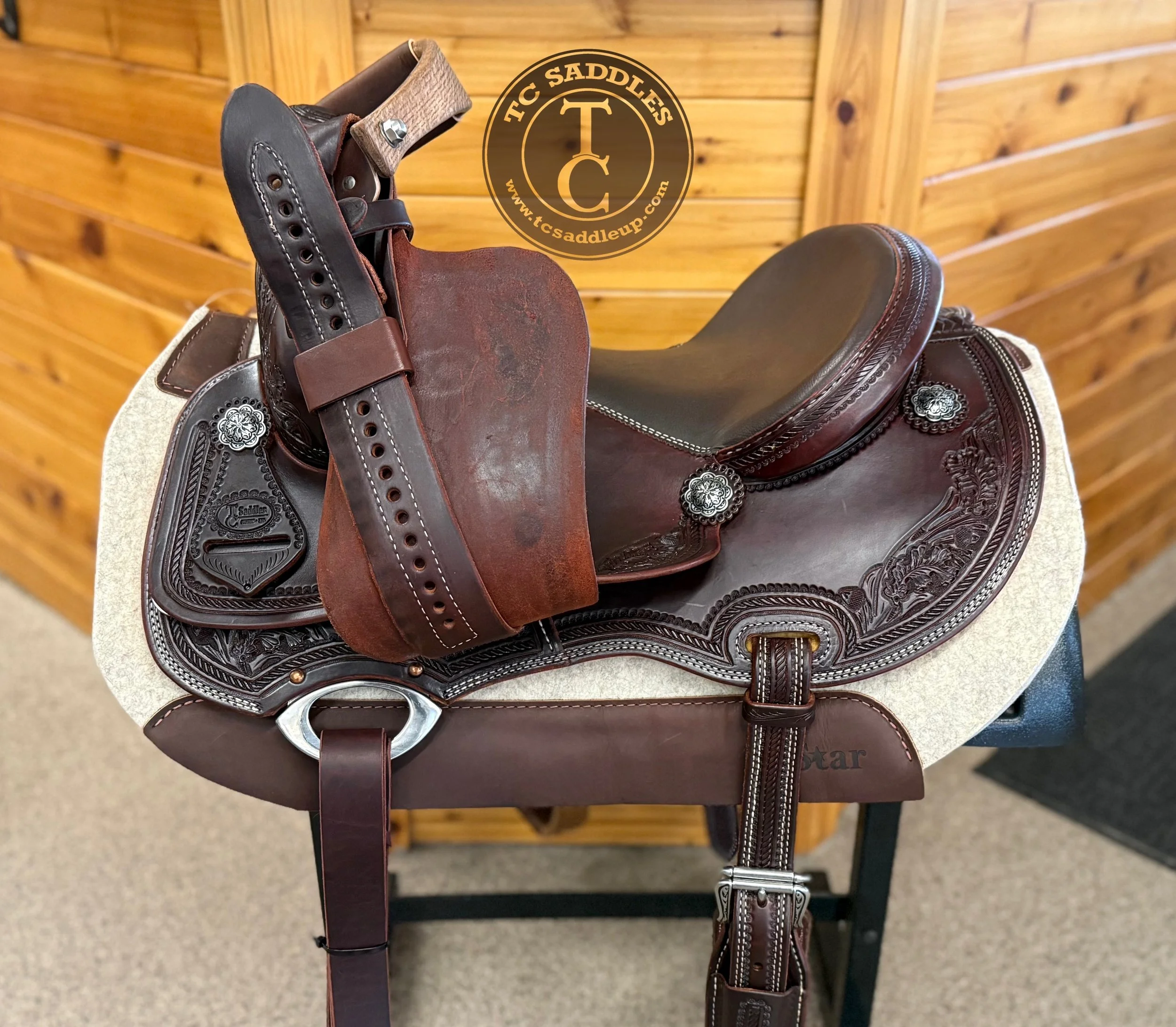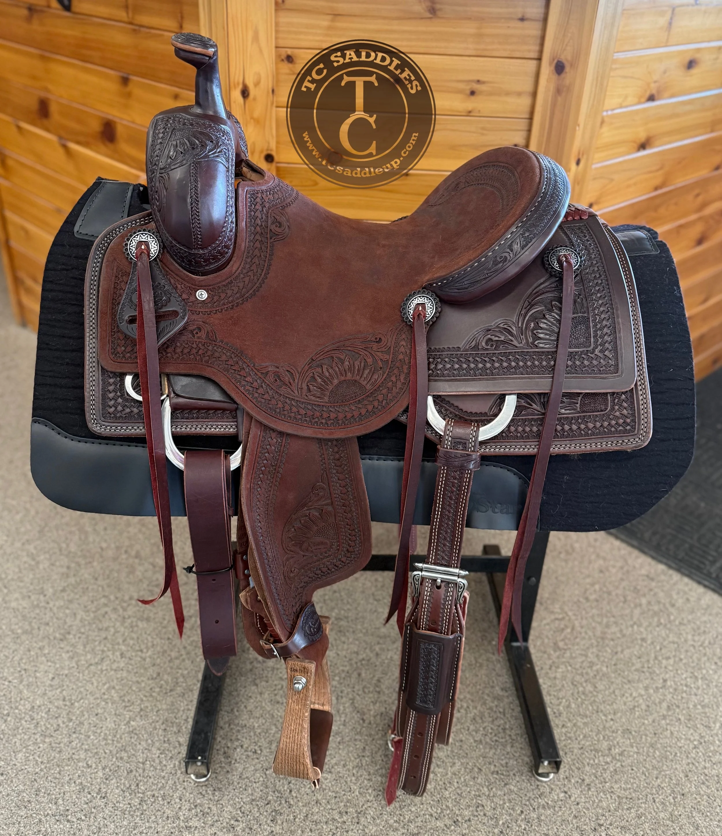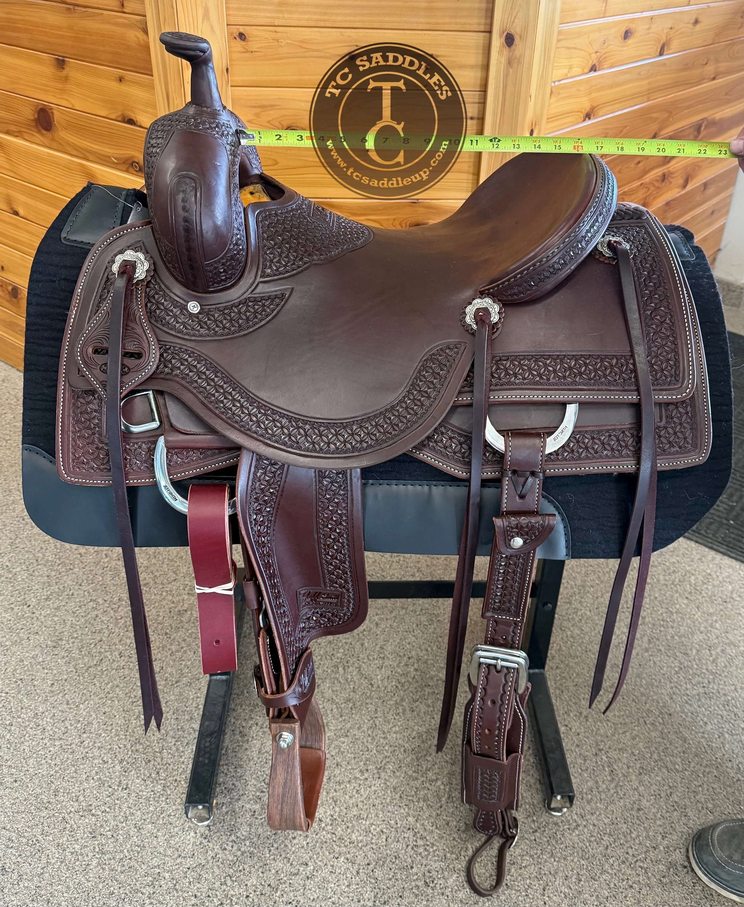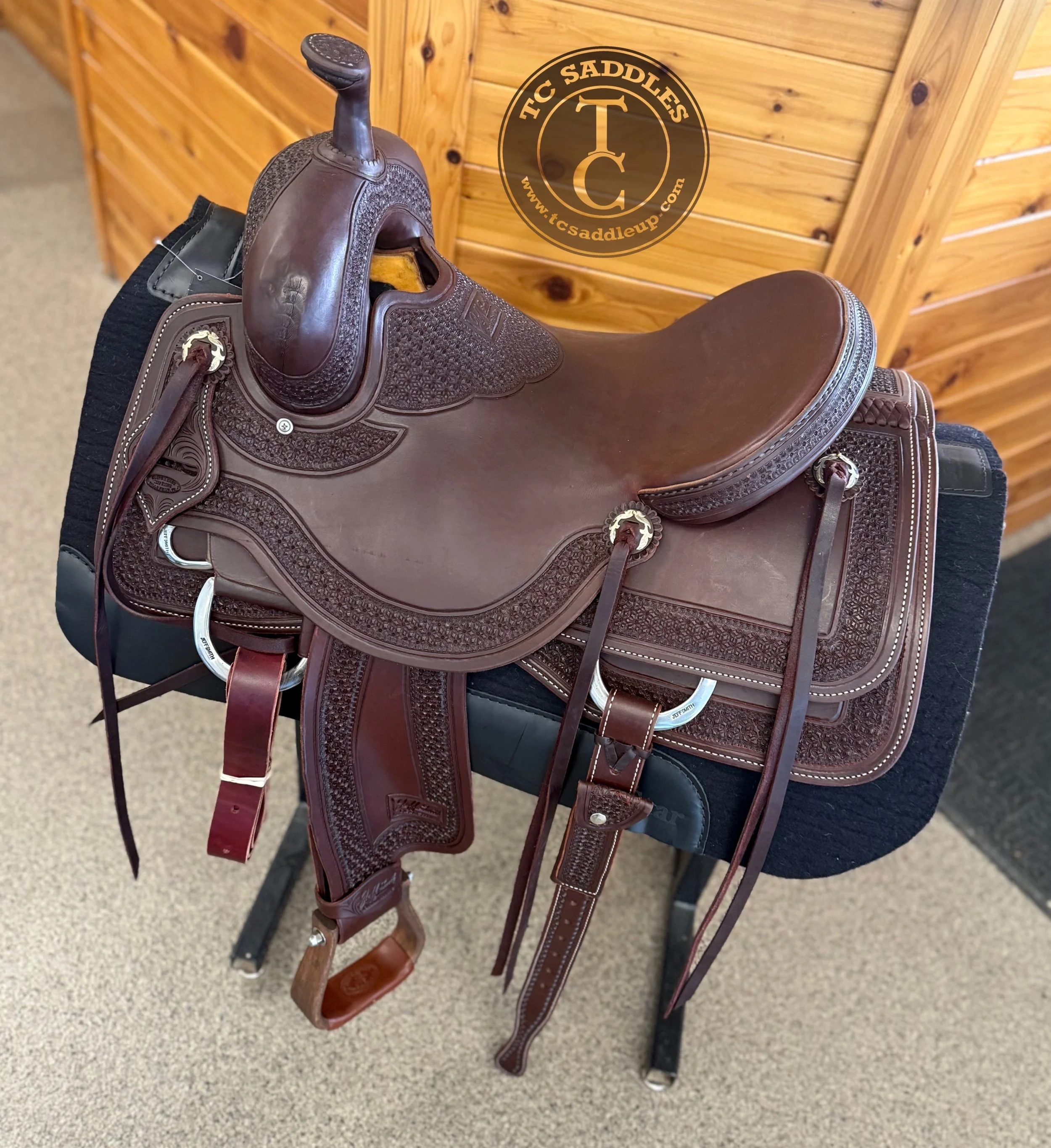 Shop Saddles & Tack In Stock (AT STORE)! Jeff Smith 15.5” BW Ranch Cutter $3,200.00 In Stock (AT STORE)! Jeff Smith 15” BW Ranch Cutter $3,200.00 In Stock (AT STORE)! Bob’s Custom 16” Bob Avila DL Cow Horse, B25-034 $5,450.00 In Stock (AT STORE). TC Custom 15” BW Tree, 25-041 $3,200.00 In Stock (AT STORE). TC Custom 16” BW Tree, 25-058 $3,200.00 In Stock (AT STORE)! TC Custom 15.5” BW Tree, 25-039 $3,150.00 In Stock (AT STORE)! TC Custom 16.5” DL Tree, 25-043 $3,150.00 In Stock (AT STORE)! TC Custom 15.5” BW Tree, 25-038 $3,150.00 In Stock (AT STORE)! TC Custom 16” BW Tree Square 45 DEMO MODEL $2,550.00 In Stock (AT STORE)! TC Custom 16” DL Cow Horse $2,200.00 In Stock (with saddle fitter)! TC Custom 16" BW Tree, 25-036 $3,200.00 In Stock (with saddle fitter)! TC Custom 14.5” BW Tree 25-051 $3,150.00 In Stock (with saddle fitter)! TC Custom 16” DL Tree, 25-044 $3,150.00 In Stock (AT STORE). Jeff Smith 16” BG Ranch Cutter $3,200.00 In Stock (AT STORE). Jeff Smith 16.5" BW Ranch Cutter $3,200.00 In Stock (AT STORE)! Jeff Smith 15” DL, Short Skirt $2,925.00 In Stock (AT STORE)! Pre-Owned Jeff Smith 16.5” DL Tree $2,650.00 In Stock (AT STORE)! Pre-owned Jeff Smith 16" BW Ranch Cutter $2,550.00 In Stock (AT STORE)! Bluestem Trail Light Weight 15” Wide Tree $2,850.00 In Stock (AT STORE)! Bluestem Trail Light Weight 16” Wide Tree $2,850.00 In Stock (AT STORE)! Bluestem Trail Light Weight 16” Wide Tree $2,850.00 In Stock (AT STORE)! Bluestem Trail Light Weight 15” Regular Tree $2,850.00 In Stock (AT STORE)! Bluestem Trail Light Weight 16.5” Wide Tree $2,750.00 In Stock (AT STORE)! Green Valley Trail Light Weight 16” Wide Tree $2,450.00 In Stock (with saddle fitter)! Bluestem Trail Light Weight 16” Regular Tree $2,850.00 In Stock (with saddle fitter)! Bluestem Trail Light Weight 16” Regular Tree $2,850.00 In Stock (with saddle fitter)! Green Valley Trail Light Weight 15” Wide Tree $2,450.00 In Stock (with saddle fitter)! Circle Y Dawson Barrel 14” Wide Tree $2,350.00 In Stock (with saddle fitter)! Circle Y Dawson Barrel 14” Regular Tree $2,350.00 In Stock! (with saddle fitter) Bluestem Trail Light Weight 15” Wide Tree $2,520.00 In Stock (AT STORE). Tucker Horizon Wanderer Trail Saddle, 17.5" Cushioned Seat, Wide Tree, Photos coming soon! $2,650.00 In Stock (AT STORE)! Pre-Owned RW Bowman 16” Seat $1,450.00 ON HOLD. (AT STORE)! Jeff Smith 16” BW Ranch Cutter $3,200.00 ON HOLD. TC Custom 15” BW Tree, 25-052 $3,150.00 PENDING. Bob’s Custom Show Saddle 16.5” Seat $6,950.00 PENDING. Bob’s Custom Saddle 15” Lady Reiner, B25-258 $6,425.00 PENDING (AT STORE)! Pre-owned Jeff Smith 16" BG Ranch Cutter, Padded Seat, Light Weight! $2,850.00 SOLD. TC Custom 15” DL Tree, 25-033 $0.00 SOLD. TC Custom 15” BW Tree, short skirt, 25-037 $0.00 SOLD. Pre-owned Jeff Smith 15.75” Cow Horse $0.00 SOLD. TC Custom 16.5” BW, 25-049 $0.00 SOLD. TC Custom 16” DL Tree, 25-027 $0.00 SOLD. TC Custom 16” BW Tree, 25-042 $0.00 SOLD. TC Custom 15" BW Tree, 25-029 $0.00 SOLD. TC Custom 16” DL Tree, 24-005 $0.00 SOLD. TC Custom 15.5” DL Tree, short skirt, 25-046 $0.00 SOLD. TC Custom 15” DL Tree, 25-034 $0.00 SOLD. TC Custom 16" DL Tree, 25-047 $0.00 SOLD. TC Custom 16” DL Tree, 24-008 $0.00 SOLD. TC Custom 15.5” DL Tree, 25-035 $0.00 SOLD. TC Custom 15” DL Tree, 24-020 $0.00 SOLD. TC Custom 15” DL Tree, 25-022 $0.00 SOLD. TC Custom 16" BW Tree, 25-030 $0.00 SOLD. TC Custom 15.5" BW Tree, 25-031 $0.00 SOLD. TC Custom 16” DL Tree, 25-028 $0.00 SOLD. TC Custom 16” BW Ranch Cutter, 25-024 $0.00 SOLD. Jeff Smith 16" BW Ranch Cutter $0.00 SOLD. Jeff Smith 15.5” BG Ranch Cutter $0.00 SOLD. Jeff Smith 15” BW Ranch Cutter $0.00 SOLD. Jeff Smith 16” BW Ranch Cutter $0.00 SOLD. Jeff Smith 16” BW Ranch Cutter $0.00 SOLD. Jeff Smith 16” DL Tree $0.00 SOLD. Jeff Smith 16” BG Ranch Cutter $0.00 SOLD. Jeff Smith 16” BW Ranch Cutter $0.00 SOLD. Bluestem Trail Light Weight 15” Wide Tree $0.00 SOLD. Bluestem Trail Light Weight 16” Wide Tree $0.00 SOLD. Bluestem Trail Light Weight 15” Regular Tree $0.00 SOLD. Oyster Creek Trail Light Weight 15” Wide Tree $0.00 SOLD. Green Valley Trail Light Weight 16” Wide Tree $0.00 SOLD. Bluestem Trail Light Weight 16” Regular Tree $0.00 SOLD. Bluestem Trail Light Weight 15” Regular Tree $0.00 SOLD. Bluestem Trail Light Weight 16” Regular Tree $0.00 SOLD. Green Valley Trail Light Weight 15” Wide Tree $0.00 SOLD. Bob’s Custom Saddle 15.5” Lady Reiner, B25-259 $0.00 SOLD. Bob’s Custom Saddle 16” Lady Cowhorse B25-101 $0.00 SOLD. Bob's Custom Saddle 15.5” BW Tree, Short Skirts! B24-561 $0.00 ON HOLD. Bob’s Custom Saddle 16” Lady Reiner, B25-053 $0.00 SOLD. Bob’s Custom Saddle 15.5” Lady Cowhorse B25-102 $0.00 SOLD. Bob's Custom Saddle 16” DL Tree, Short Skirts! B24-316 $0.00 SOLD. Bob’s Custom Saddle 15” Lady Reiner, Short Skirts! B25-159 $0.00 SOLD. Bob's Custom Saddle 16" 6.75 BW Tree, B24-474 $0.00 SOLD. Bob’s Custom Saddle 15.5” Lady Reiner, B25-158 $0.00 SOLD. Bob’s Custom Saddle Lady Reiner, 15.5” B25-052 $0.00 SOLD. Bob’s Custom Saddle 16” Lady Reiner, B25-100 $0.00 SOLD. Bob’s Custom Saddle 15” Lady Reiner, Short Skirts! B25-098 $0.00 SOLD. Bob's Custom Saddle B24-317 16" KR Lady Reiner - DL Tree $0.00 SOLD. Pre-owned Don Rich 15 1/4” Ranch Cutter $0.00 SOLD. Don Rich Cow Horse 16 1/4” $0.00 SOLD. Pre-Owned Don Rich 16 1/4” BW Ranch Cutter $0.00 SOLD. McCall Lady Pendleton 15.5” FQHB $0.00